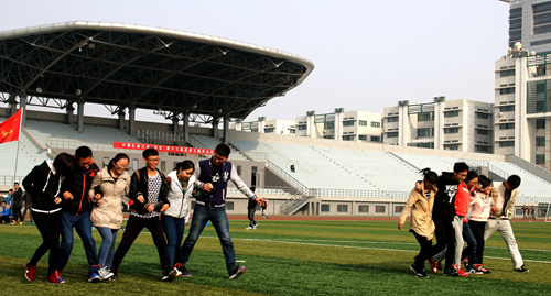 在主持人邢昌浩、洪姗宣布运动会正式开始之后,各个学院的同学们也随即进入活动状态。本次运动会共分为A/B/C/D四个区域,十一个学院随机分为四组同时进行比赛,一项比赛结束后顺次进入下一个场地参与比赛,比赛以学院为单位积分。田径场上,有丢毽子、双人跳绳、筷子夹小球、并脚行走等多种多样的活动,同学们有的参与其中,有的驻旁加油,运动会上各有所乐。“指手画脚”环节中,男生女生开动脑筋,活动手脚齐力猜成语,在运动中玩知识,赛乐趣。三个学院一起比拼的“并脚行走”游戏吸引到许多同学观看,每个学院三男三女交叉排列,随着裁判一声令下,参赛同学快步齐走,不分上下。赛场上活动有条不紊的进行,各个学院男生与女生并肩比赛,竞争与合作融成一体。运动会的最后,一个趣味拔河把现场的气氛带入了高潮,运动会也在选手的拼搏中接近尾声。据悉,信息与控制工程学院在此次比赛中拔得头筹。