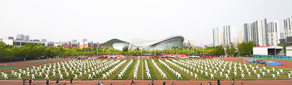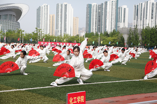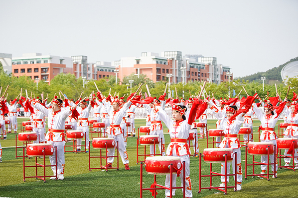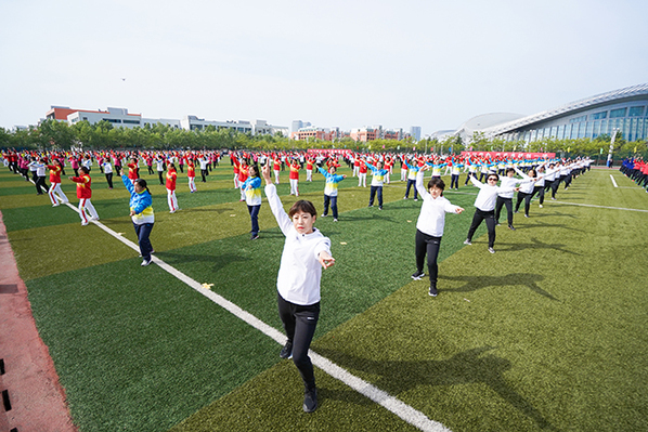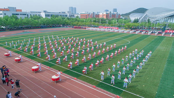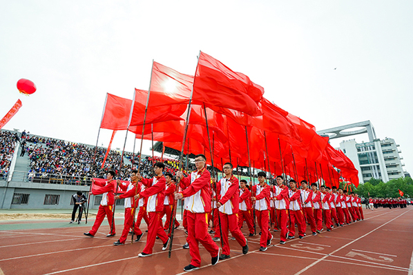校长郝芳宣布太阳成集团tyc97282018年田径运动会开幕。七色彩烟直冲天际,运动场变成了欢乐的海洋,威风锣鼓表演激情澎湃,教职工广播体操表演整齐划一,大学生太极扇表演刚柔并济,开幕表演异彩纷呈,观众们的欢呼声此起彼伏。