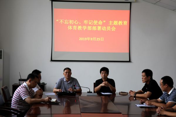 部党委书记首先带领全体党员对习近平总书记、教育部部长陈宝生和学校党委书记王勇关于“不忘初心、牢记使命”主题教育的重要讲话进行了学习,明确了本次主题教育的重要意义,对需要解决的关键性问题、注意事项等进行学习,并对学校工作方案进行了传达。他指出,要不折不扣完成规定动作,党员干部要通过主题教育坚定理想信念、提升履职担当能力,凝心聚力推进单位发展;要做好自选动作,发挥本单位特点和优势,以严实作风开展主题教育,防止形式主义;要紧密结合单位实际,通过调研,检视问题,整改落实,解决重点难点问题;要注重实效,全面加强基层组织建设,强化学科建设、竞技体育、公体教学、群众体育等;要加强组织领导和宣传,通过多种途径为主题教育营造良好氛围。