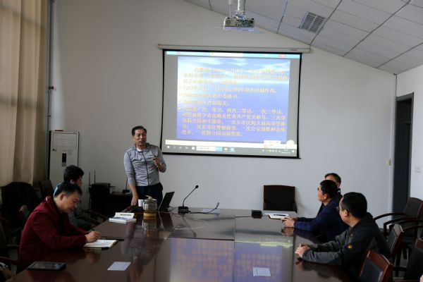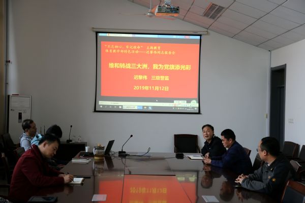 11月12日,9728太阳集团“不忘初心、牢记使命”主题教育特色活动在体育场看台会议室举行,邀请青岛海关缉私局迟黎伟同志做专题党课。部党委书记王永胜主持,全体教工党员和部分学生党员参加。