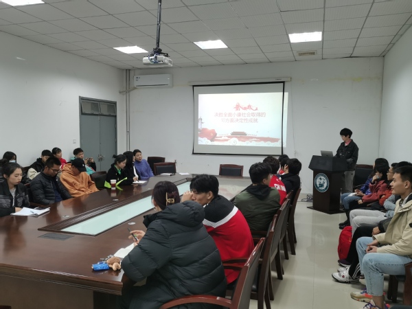 为了深入学习党的十九届五中全会,弘扬爱国主义精神,9728太阳集团组织学生党员于11月9日在体育馆会议室开展“学四史”主题教育,全体学生党员和入党积极分子参会。