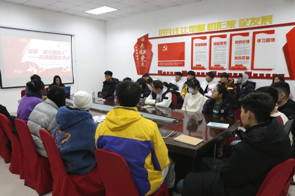 1123日,2001级团支部在体育馆会议室举行“致敬最可爱的人——抗美援朝专题学习分享会”主题团日活动。本次活动由团支书殷艺郡主持,团委书记姜庆林、辅导员龙雯和全体成员参加活动。