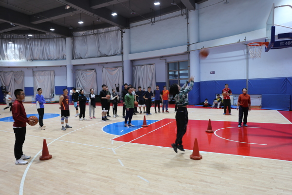 比赛第一环节为趣味投篮,由导师和学生在5个投篮点依次投篮,时间最短的获胜。经过比拼,最终宋述光老师队、夏娇阳老师队、周伟老师队获得前三名。第二环节,全体师生以“师门”为单位,自由上场两男一女进行三人篮球比拼,最终宋述光老师队、王锋老师队、周伟老师队分列前三名。现场气氛活跃,师生积极参与,热情高涨。