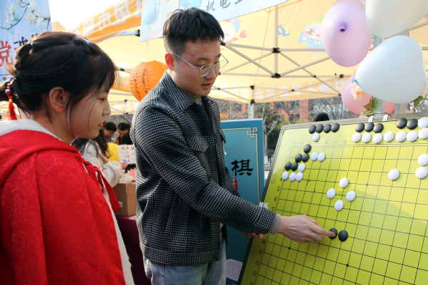 “百年恰是风华正茂,美丽摇曳多彩石光”。本次游园活动不仅邀请到第18届“思美之星”王燕为大家介绍活动内容、规则以及琴棋书画的历史和女性代表人物,还邀请到校民乐队、棋牌社、翰墨飘香书画社等多个社团为本次活动助力。一对一教学体验与随机互动问答,让观众们零距离感受传统文化的魅力。