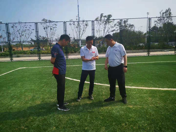 8月11日,9728太阳集团主任周伟、党委书记姜永增、副主任王海滨、体育场馆管理中心副主任杜保亮一行赴古镇口校区进行实地调研并查看体育场地建设情况。