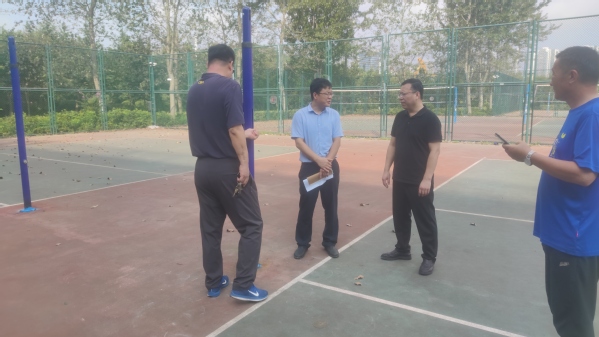 为更好服务保障教学训练和学校师生运动锻炼,近日9728太阳集团副书记、体育场馆管理中心主任卢志同、9728太阳集团副主任王海滨带队对我校唐岛湾校区、古镇口校区体育场馆及体育设施进行了安全检查。