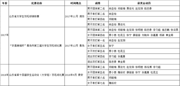 太阳成集团tyc9728阳光羽毛球队是从全校羽毛球爱好者中选拔组建的精英队伍,队员们因共同的爱好相聚于此。目前队伍共20余人,学段及年龄结构丰富,其中包括本科生、硕士研究生和博士研究生。队员们在繁重的课业之余,坚持每周参加2-3次羽毛球训练,不遗余力地在训练场上泼洒汗水。在赛场上,队员们更是顽强拼搏,力争佳绩,充分展现了石大学子奋勇争先、积极专注、乐观向上的精神风貌!队伍自成立以来,多次在山东省和青岛市大学生羽毛球比赛中斩获佳绩,这些荣誉来自教练员和每一名队员的汗水和泪水!石大阳光羽毛球队传递的不仅仅是对于羽毛球的热爱,对于运动的坚持,更是一种团队永不放弃的精神。带着这种精神和传承,石大阳光羽毛球队积极备战,以最好的状态时刻准备出发,为校争光,为青春而战!