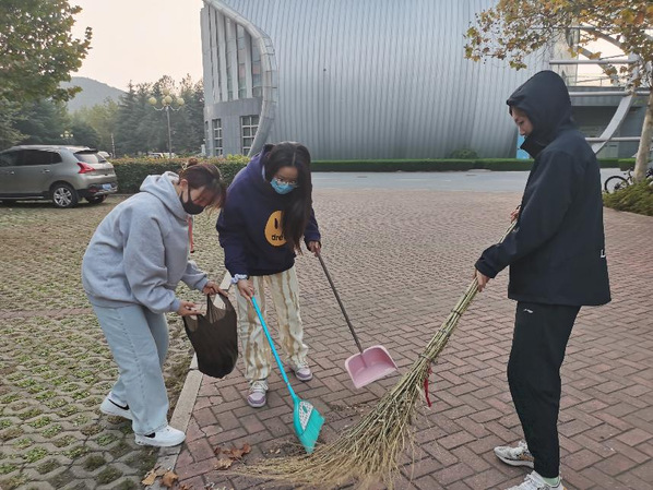此次活动以“加强劳动教育,共创美丽校园”为主题,针对秋冬季体育馆外落叶较多、馆内保洁压力大的卫生现状,对体育场馆内外进行打扫,为场馆清洁和维护工作奉献绵薄之力。在劳动的过程中,志愿者们分工明确。一部分志愿者在体育馆内擦栏杆、擦座椅、捡拾地面垃圾,另一部分志愿者在体育馆外及周边运动场地清扫落叶。在约1小时的辛勤劳动下,体育馆内外及周边的环境变得愈加干净整洁。