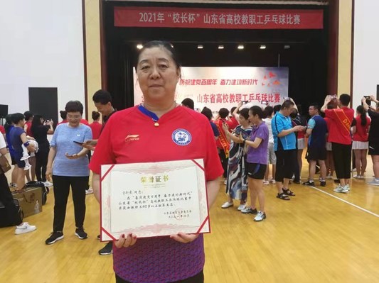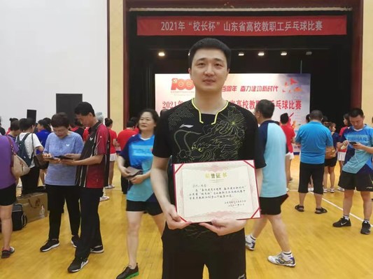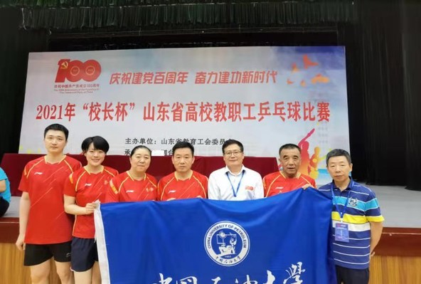 7月6日至9日,2021年“校长杯”山东省高校教职工乒乓球比赛在烟台大学举行。我校由杨同伟、高守庆、郭新霞、张帆、梁莎莎组成的代表队参加比赛。工会主席张军、副主席汤平如担任领队和教练员。经过四天紧张激烈的比赛,太阳成集团tyc9728获混合团体比赛第九名,张帆获教工组40岁以下男子单打第四名,郭新霞获教工组40岁以上女子单打第五名,我校同时获优秀组织奖。