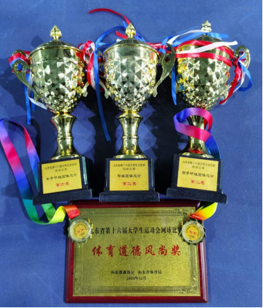 2021年12月13日至16日,山东省第十六届大学生运动会网球比赛于山东济南博格网球场举行。我校网球队派出4男3女共7位队员参加甲组比赛,经过不懈的拼搏,最终获得甲组团体总分第三名、男子甲组团体总分第二名、女子甲组团体总分第六名的优异成绩。