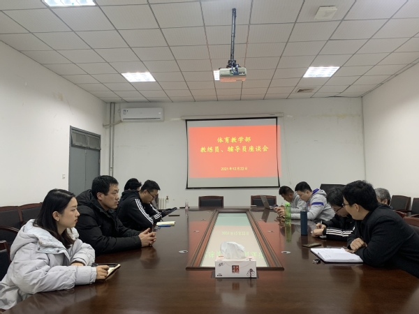 为进一步加强教练员与辅导员之间交流,更好地开展学生教育与管理工作,12月22日,9728太阳集团在体育馆会议室召开教练员、辅导员座谈会。本次会议由部党委副书记卢志同主持,部副主任宋述光、全体教练员、辅导员参加会议。