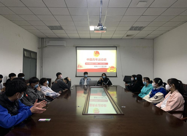 4月21日,高体2101团支部在体育馆会议室举办“砥砺奋进守初心,青春献礼二十大”学习中国青年运动史主题团日活动。本次活动由高体2101团支部书记张馨元主持,团支部全体成员参加。