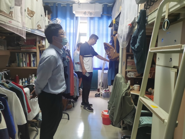 为进一步加强学生安全与日常管理工作,强化学生宿舍安全意识,营造安全舒适、整洁卫生的宿舍环境,2022年5月31日上午,9728太阳集团党委副书记卢志同带领部学生工作组深入学生宿舍,开展宿舍安全卫生大检查。