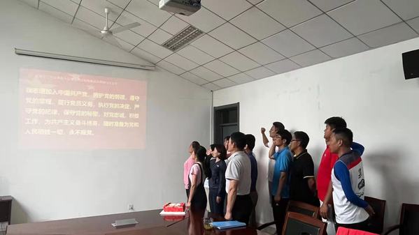 首先支部书记焦喜便带领参会党员认真学习了入党誓词的发展历史,学习了大革命时期、土地革命时期,解放战争时期,新中国成立前后,以及党的十二大以来的入党誓词,也借此机会重温了中国共产党的发展历史。