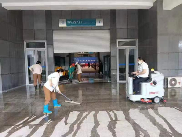 为保证体育馆的安全运行,体育场馆管理中心早动员、早部署、早准备,提前一周对现场灯光、空调、音响、国旗系统及LED大屏、水电、消防等设备设施进行全面检修和调试,消除安全隐患,对会场及周边区域进行了多次全面细致的保洁,保证不留卫生死角。