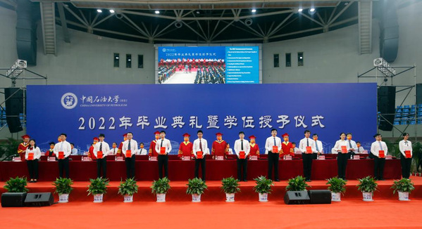 2022年6月22日,学校2022年毕业典礼暨学位授予仪式在唐岛湾校区体育馆隆重举行,2022届全体毕业生,党委书记王勇、校长郝芳院士等在校校领导,学位评定分委员会主席,各教学院(部)和相关部门负责人参加毕业典礼暨学位授予仪式。