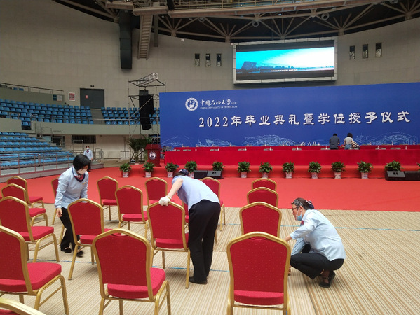自接到毕业典礼场地保障任务后,体育场馆管理中心高度重视,召开专项工作协调会,主动对接学校办公室、后勤管理处、信息化建设处、保卫处、学生工作部等相关职能部门,沟通了解毕业典礼活动需求,制定活动与应急方案,切实做好毕业典礼期间的各项后勤服务保障工作。