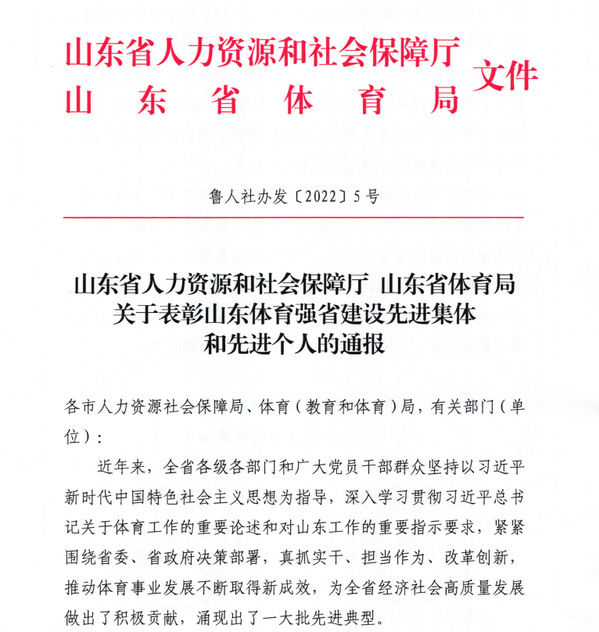 近日,山东省人力资源和社会保障厅、山东省体育局联合下发《关于表彰山东体育强省建设先进集体和先进个人的通报》,我校9728太阳集团被评选为“山东体育强省建设先进集体”。