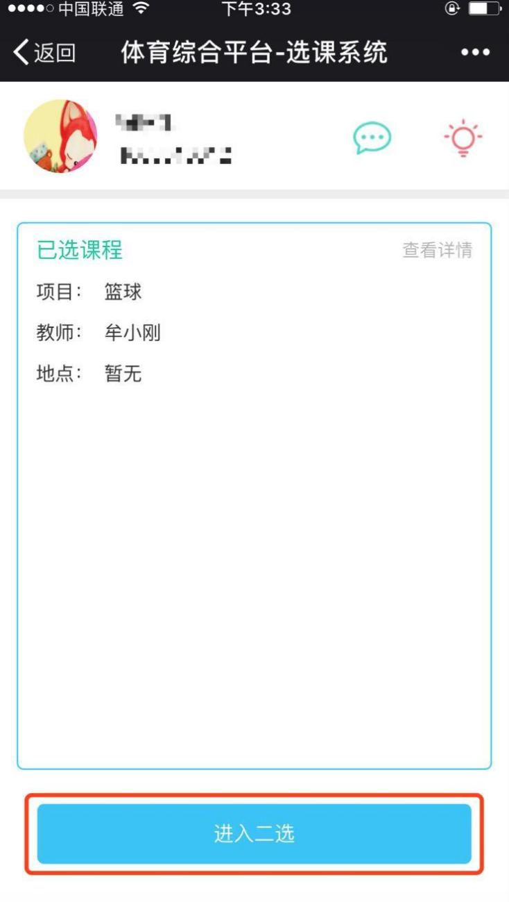 2.一选开始后,进入页面点击下方按钮正式进入一选抢课。