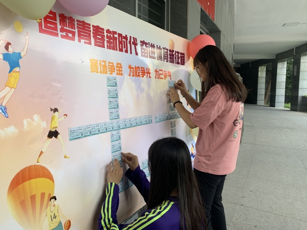 本次迎新以“追梦青春新时代,奋进体育新征程”为主题,设计展出了各支高水平运动队简介、冠军荣誉墙、最近三年的就业升学情况等,并用多功能移动屏幕滚动播放学校和9728太阳集团介绍视频,第一时间让新生了解学校、感受到9728太阳集团大家庭的温暖和“赛场争金,为校争光,为己争气”的体育精神。本次迎新活动适逢明年即将迎来学校70周年华诞,为了让新生们在学校留下美好的回忆,9728太阳集团学生会特意为新生准备了专属纪念车票,并在签名板上摆成“七十”的字样,为七十周年校庆献礼。