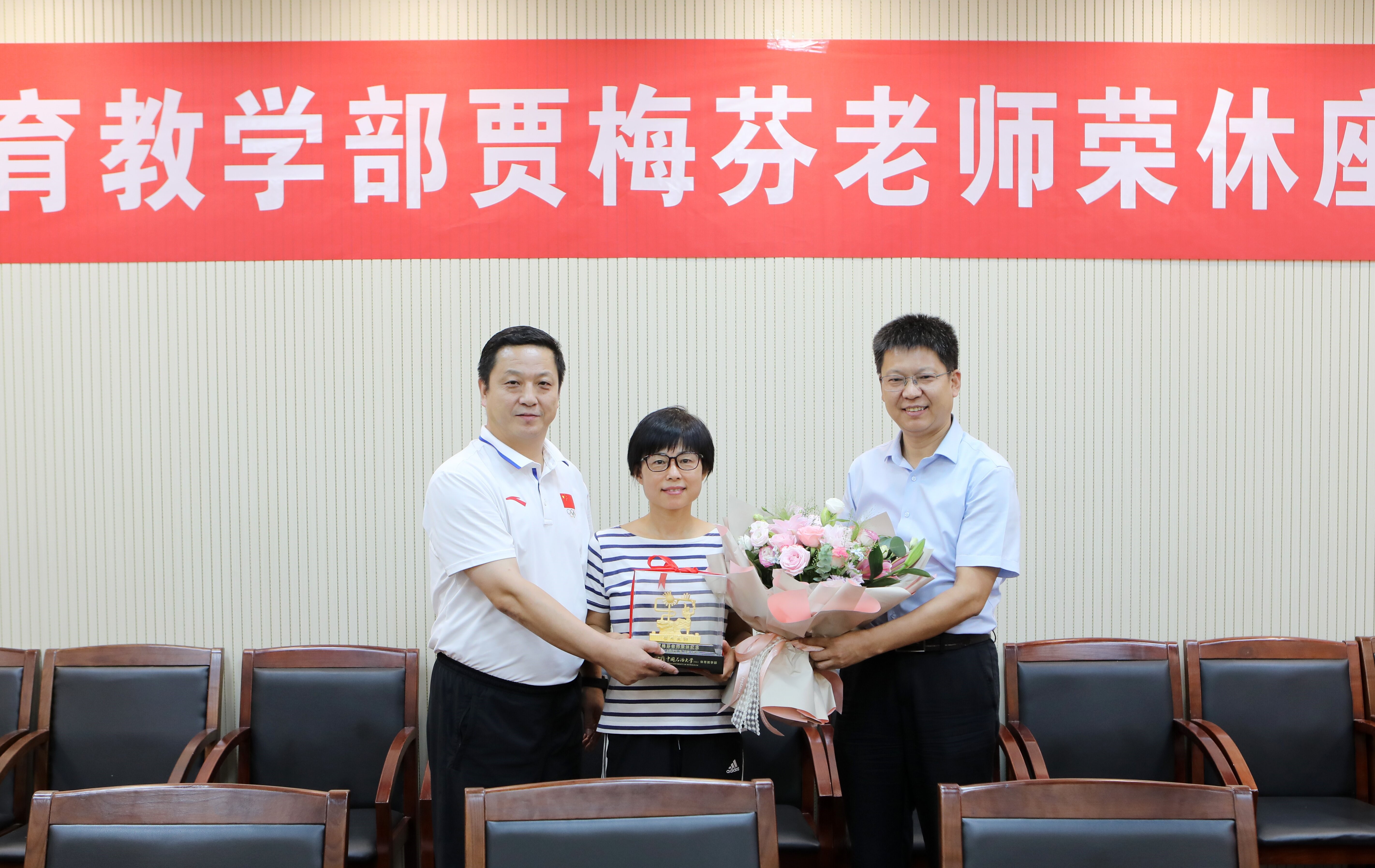 2022年9月8日,9728太阳集团在体育馆会议室举行贾梅芬老师荣休座谈会。9728太阳集团主任周伟、党委书记姜永增、副主任王海滨、宋述光、党委副书记兼体育场馆管理中心主任卢志同,各教研室主任、支部书记和部工会、办公室、团委、教职工代表等相关人员参加此次座谈会,座谈会由部办公室韩文主持。