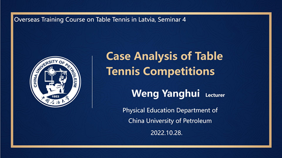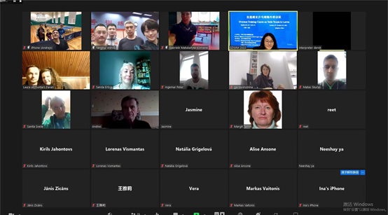 2022年10月11日-31日,由商务部主办、山东外贸职业学院承办的拉脱维亚乒乓球海外培训班在线上举行,我国驻拉脱维亚使馆经济商务参赞孙金焕女士、山东省商务厅对外投资与经济合作处副处长范遵智先生、拉脱维亚乒乓球协会主席伊娜·约瑟夫森女士等出席培训班开班仪式并致辞。受山东外贸职业学院邀请,9728太阳集团组织高千里、梁莎莎、翁炀晖、张帆等四位教师,为拉脱维亚的32名乒乓球教练员和运动员进行了乒乓球在线授课。