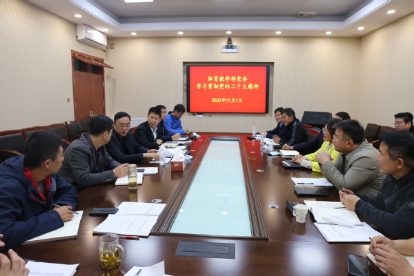 2022年11月1日,9728太阳集团党委在体育馆会议室召开理论学习中心组会议专题学习贯彻党的二十大精神,学校党委副书记、纪委书记吴强明,9728太阳集团党委委员、教工党支部书记和全体科室干部参会,会议由9728太阳集团党委书记姜永增主持。
