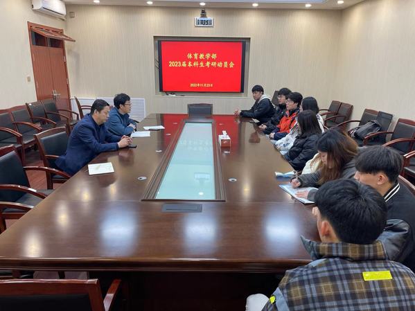 会议第一环节,考研同学分别介绍了个人报考学校、目前的复习情况、所面临的实际困难等,并就关心的问题向老师们请教咨询。部主任周伟教授结合自身考研经历和多年研究生招考经验,从复习技巧、应试技巧、调整身心状态等方面为同学们提出建议,指出要加强对党的二十大精神的学习理解,要多与往年报考的师哥师姐交流,要合理分配时间、提高学习效率,同时调整好身心状态,以饱满的精神状态参加考试。周伟强调,全体同学要“有信心”“有决心”“有恒心”,在最后一个月时间里做好规划和冲刺;“要投入”,相信有付出才会有收获,拿出“体育人,一定行”的精神面貌坚持到底;“给支持”,9728太阳集团会从提供学习教室等方面全力为考研学生做好保障。部党委副书记卢志同分析了最新的就业形势和研究生招考形势,以“信念”“勤奋”“执着”三个关键词为同学们加油鼓劲,鼓励同学们坚持到底,力争取得理想的成绩。