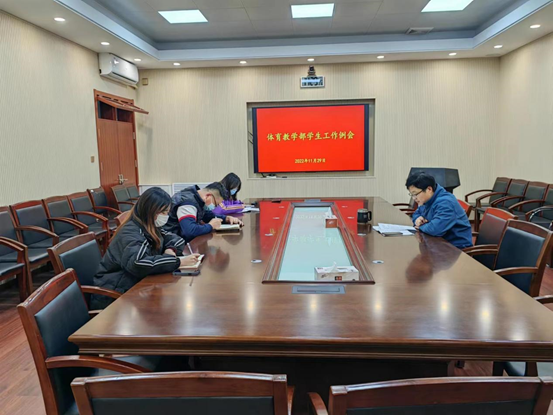 为总结近期学生工作,对期末的主要工作进行安排部署,2022年11月29日,9728太阳集团学生工作组在体育馆会议室召开学生工作例会,会议由部党委副书记卢志同主持,部团委书记姜庆林、全体辅导员参加。
