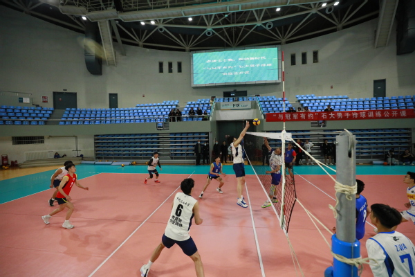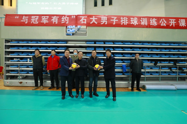 为深入学习贯彻党的二十大精神,促进校园群众体育和竞技体育的交流、融合与发展,2022年12月2日,“与冠军有约”石大男子排球训练公开课在学校体育馆举行。学校党委副书记、纪委书记吴强明出席,原国家男排主教练、学校男子排球高水平运动队主教练邸安和,团委、9728太阳集团相关负责同志,男子排球高水平运动队教练员、运动员以及阳光组男子排球队队员、青年健身节男子排球冠军队伍成员参加此次公开课。