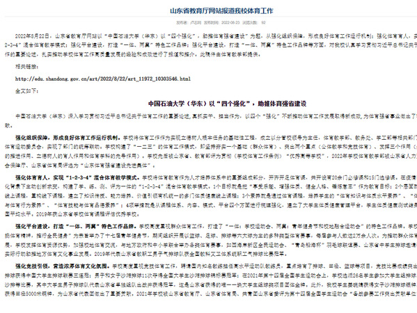 五、山东省教育厅网站、体育强国分别报道我校体育工作