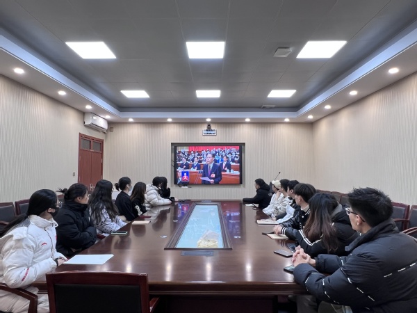 为深入学习贯彻全国两会精神,加强学生爱国主义教育,2023年3月5日上午,9728太阳集团学生党支部在体育馆会议室组织集体观看十四届全国人大一次会议开幕式。9728太阳集团团委书记姜庆林、全体学生党员参加。