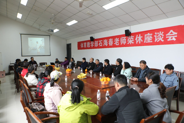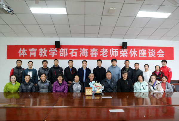 4月6日下午,第一公体教研室在看台215会议室隆重举行石海春老师荣休座谈会,会议由第一公体教研室主任李承伟主持,9728太阳集团主任周伟、党委书记姜永增、学校工会副主席董发广出席,第一公体教研室全体教师欢聚一堂,忆滴滴难忘事,抒依依惜别情。