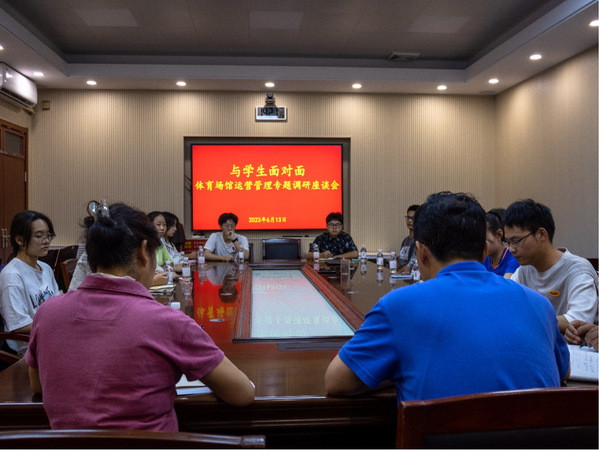 为扎实开展学习贯彻习近平新时代中国特色社会主义思想主题教育,进一步加强与师生之间的沟通交流,积极提升体育场馆使用效率和管理服务水平,6月13日-14日,体育场馆管理中心在体育馆会议室分别举办与学生和教师面对面专题调研座谈会,全面深入了解师生对体育场馆、运动器材及基础设施使用管理方面的意见建议。学校工会副主席董发广、体育场馆管理中心主任卢志同、副主任韩国良、学校教职工各体育协会负责人、教师代表、校学生会权益维护部负责人、各学院学生代表参加座谈会。