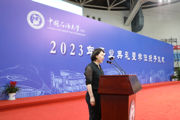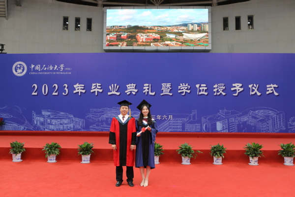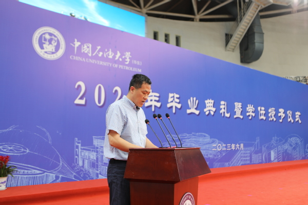 仪式上,9728太阳集团学位分委员会主任周伟教授,为每一位毕业生完成拨穗礼,并颁发毕业证书;导师代表夏娇阳副教授发言,表达了老师们对毕业学子的殷殷期待和美好祝福,希望他们仰望星空、脚踏实地,靠创新、实干、担当,用知识、智慧、热情来造福社会,书写人生;毕业生代表徐俪玮发言,向母校和老师们的辛勤付出表示衷心感谢,代表毕业生表达了走出石大校园,开启崭新生活后继续努力奋进的决心,一定会牢记“石大体育人”的烙印,用奋斗拼搏出无怨无悔的靓丽人生!