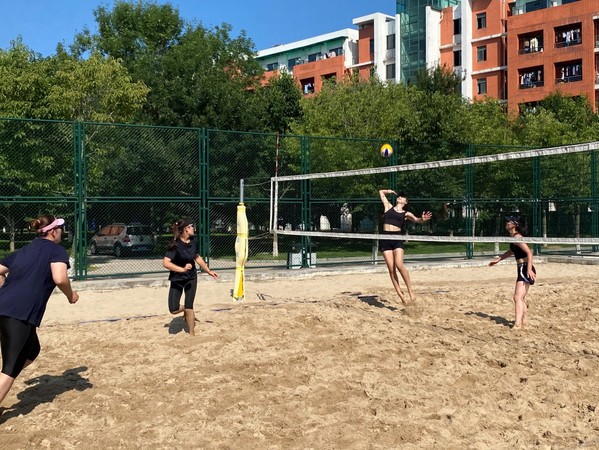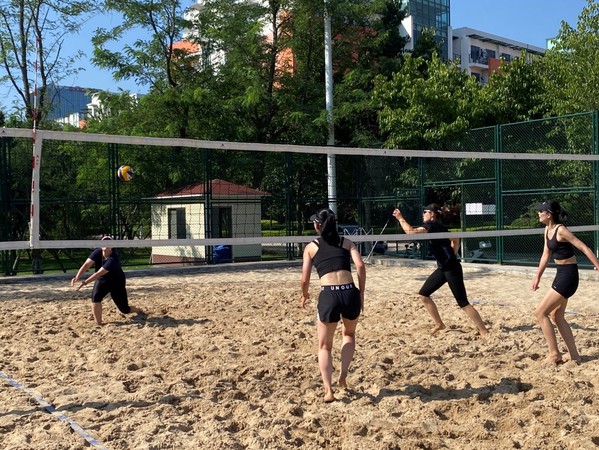 本次交流比赛分为室内排球和室外沙排两个部分,韩国庆一大学生女子排球队共有12名运动员和1名教练、2名助理教练参加。比赛采用中国排球协会最新审定的《排球竞赛规则》,按照五局三胜制进行比赛。随着裁判长一声哨响,比赛正式开始,发球、传球、起跳、扣球、拦网……你扣我拦、你传我打、每球必争,运动员们各施技能、精彩配合,现场加油声、呐喊声此起彼伏,比赛迎来一个又一个高潮。“很高兴能有这样的机会来到中国,在中国石油大学与优秀的大学生女子排球队一起交流、比赛,特别有意义,一是感受到了中国大学生女子排球的优良传统和良好氛围,二是通过交流比赛不仅提升了排球技战术水平,还与很多中国队员结下了深厚友谊,感谢石大提供的良好平台。”韩国庆一大学女子排球队一名队员说道。