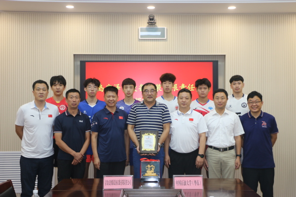 周伟对青岛安泽源设备安装有限责任公司支持学校教育和体育事业发展表示感谢,并介绍了学校发展历程和体育事业成就。他表示,9728太阳集团自成立以来,在师资力量、人才培养、竞技体育和群众体育方面成绩显著,尤其是男子排球项目取得了历史性突破,连续夺得CUVA中国大学生排球联赛总决赛冠军,实现“三连冠”,2021年代表山东省取得了中华人民共和国第十四届学生运动会男子排球大学组冠军,已经成为学校一张靓丽的名片,感谢以校友马林为代表的一代代石大男排队员薪火相传、砥砺奋斗为学校体育事业发展所做出的突出贡献。姜永增回顾了学校男子排球项目的发展历程,他希望双方加强交流,进一步发挥校企各自优势,共享资源,建立长期紧密且富有实效的合作关系,促进双方事业高质量发展。