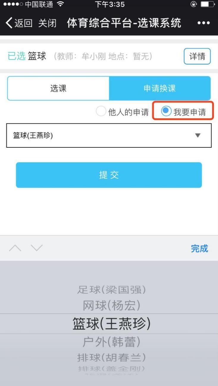 如果无意愿换课的项目,点击“我要申请”,选择意愿换的项目