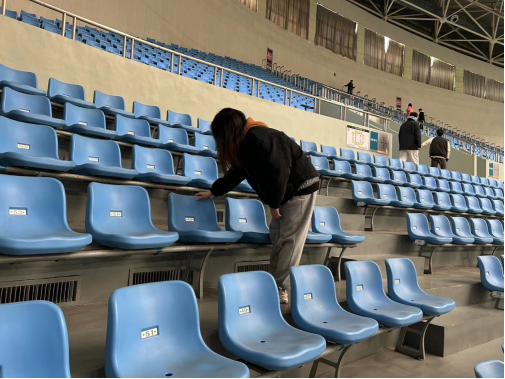 活动伊始,负责人与体育场馆工作人员进行沟通,确认清扫细节和范围。随后,在负责人的带领下场馆清扫工作有序开展,志愿者们根据自己的工作分配,认真细致地完成座椅擦拭、垃圾清理等工作。