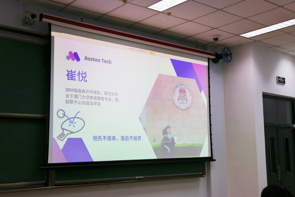 随后,由研究生就读于澳门大学体育教育专业,目前就职于山东政法学院的崔悦进行分享。崔悦以个人经历为例,讲述了自己选择申请读研的初衷以及充实的研究生生活,鼓励同学们在择校、择业时要遵循内心想法,更要全面做好准备,为自己的未来负责。