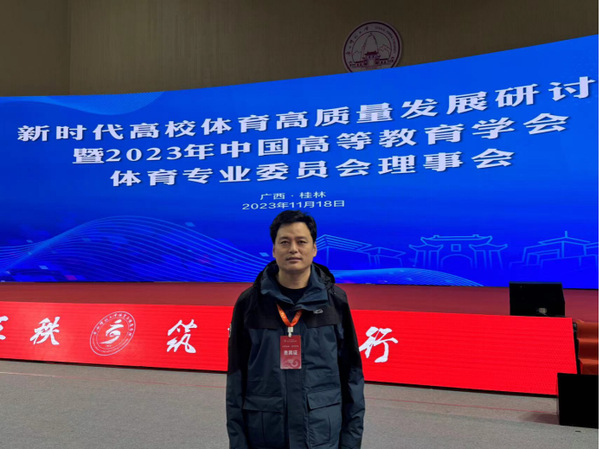 2023年11月17日至19日,2023年“新时代高校体育高质量发展研讨会暨2023年中国高等教育学会体育专业委员会理事会”在广西师范大学召开,会议由中国高等教育学会体育专业委员会主办,广西师范大学体育与健康学院承办,会议汇聚了100余位专家学者,围绕“新时代高校体育的使命与担当”主题进行了深入研讨,我部派出尤洋、李承伟2位教师参加会议。