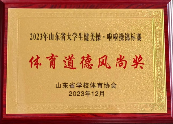 本次比赛共有来自山东各地市的54个高校的900余名健美操、啦啦操运动员参赛,是目前省内水平最高的健美操啦啦操赛事。我校JOY啦啦操队在比赛中凭借精湛的技巧、默契的配合和良好的舞台表现脱颖而出,不仅赛出了风格,更赛出了水平,荣获高校组甲组-街舞规定动作(2020版)-2级项目第一名,并获得“体育道德风尚奖”。同时,9728太阳集团2023级硕士研究生臧晓翠、李彦丽同学获得本次比赛“优秀运动员”称号。
