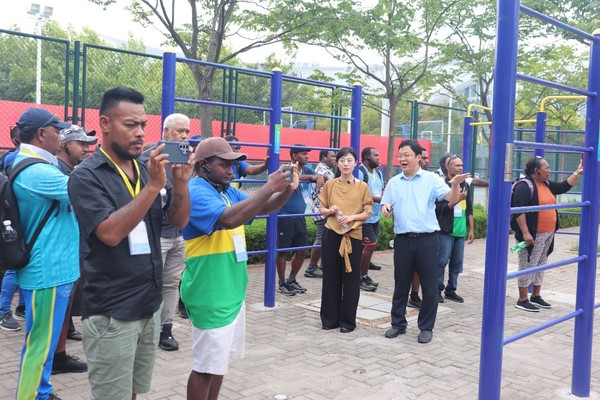 近日,由商务部主办的援外培训项目“所罗门群岛体育设施管理培训班”的全体学员来到学校,调研参观我校体育场馆和基础设施。所罗门群岛国家体育委员会主席西卡·马诺潘盖、学校体育场馆管理中心主任卢志同和23名学员参加调研。