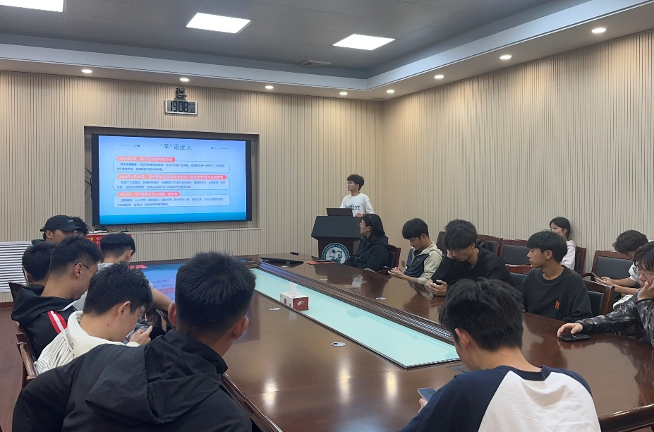 会上,宣讲人魏家欢以饱满的热情带来了一场精彩的宣讲。首先,他以一个志愿公益视频开场,结合自己的亲身经历和感悟,分享了志愿服务的意义和价值,以及如何在日常生活中践行志愿精神;随后,他向同学们介绍了“坚守奉献精神,点亮扶贫星火”的青年党员陈晓生和“结缘爱心善举,立志志愿服务”的社会人士雷鹏飞的志愿服务之路,讲述二人牢记初心深耕志愿,以微薄之力筑起公益之举;最后,魏家欢分享了个人的志愿经历和经验,并表示通过参与志愿服务,不仅能够锻炼自己的沟通能力和团队协作能力,还能够感受到帮助他人带来的快乐和满足感,他也呼吁更多的同学加入到志愿服务中来,用实际行动传递爱心和温暖。