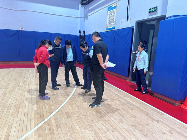 随后检查小组先后到体育馆、田径场、篮球场、足球场、乒乓球教室、瑜伽教室和文体中心等多个体育场地,仔细检查场地设施使用及安全情况,了解询问场地管理情况,听取了物业负责人和师生对场地维护和使用方面的意见与建议。