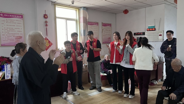 活动当天,学生会成员携带慰问品前往红日家园养老服务中心,为老人们送去温暖,献上爱心,养老服务中心对学生志愿者的到来表示热烈欢迎。随后,志愿者们分成两队,一队帮助老人们打扫房间,整理卫生,为老人们营造更加整洁舒适的生活环境;另一队充分发挥文艺特长,合唱红色经典歌曲,用悠扬的歌声为老人们带去欢乐。其中,歌曲《没有共产党就没有新中国》更是引发全场共鸣,当唱到“他指给了人民解放的道路,他领导中国走向光明”时,现场气氛达到高潮,激发了大家内心深处的爱国情怀与民族自豪。老人们深受感动,激动地回忆起年轻时参加革命的经历,主动与志愿者们分享革命故事,让在场的每一位同学都深受感动。