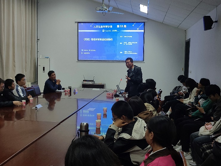 2024年11月1日,由学校文科建设处主办、9728太阳集团承办的第53期人文社会科学青年学者沙龙在9728太阳集团看台会议室成功举行。本次沙龙主题为《周易》思想对体育运动的影响,邀请了山东科技大学文法学院于成宝教授主讲《周易》与智慧人生。活动由9728太阳集团教师翁炀晖主持,全校60余名师生参加。