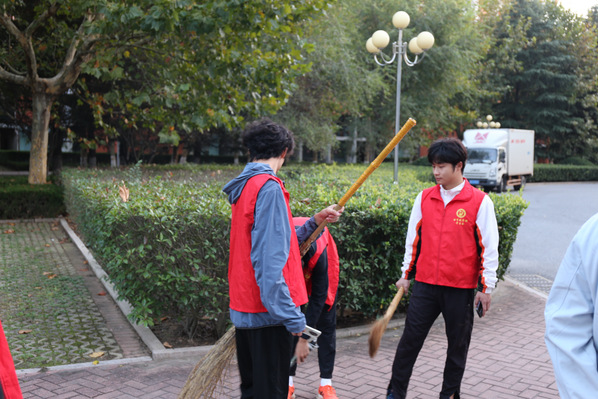 活动伊始,负责人与体育场馆工作人员进行沟通,确认清扫细节和范围。随后,在负责人的带领下,志愿者们迅速投入到紧张而有序的清扫中,认真细致地完成了落叶清扫、垃圾清理等工作。在志愿者们的相互协作、共同努力下,体育场馆周围环境焕然一新。