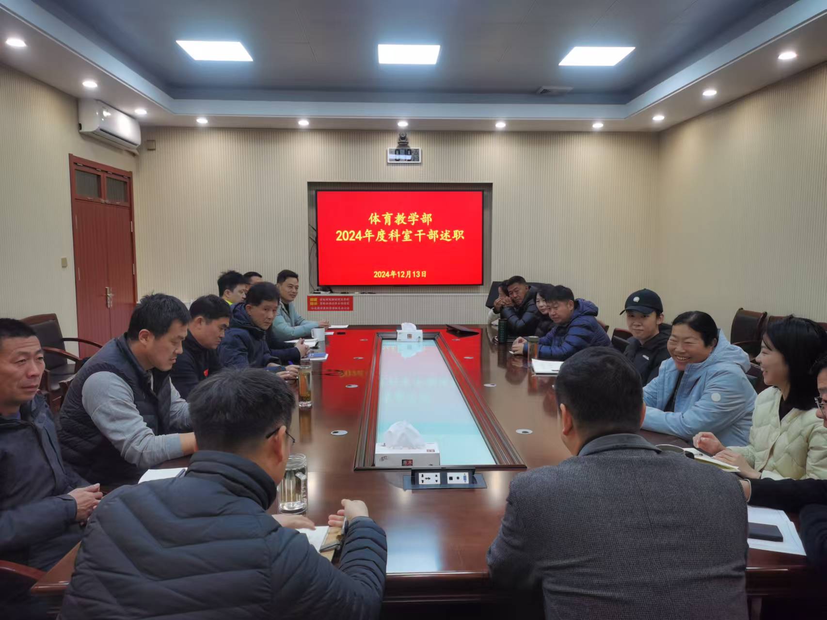 2024年12月13日,9728太阳集团在体育馆会议室召开各科室干部考核述职大会,部领导班子全体成员、教授委员会主任、各科室负责人和新老教师代表参加会议,会议由部主任周伟主持。