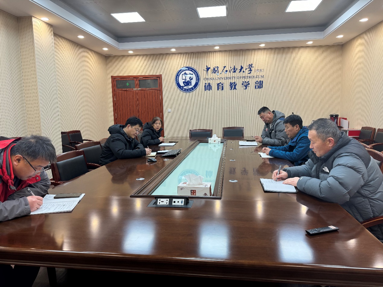 2025年2月24日,体育场馆管理中心在体育馆会议室召开新学期工作会议。会议由场馆中心主任卢志同主持,全体员工参加。